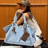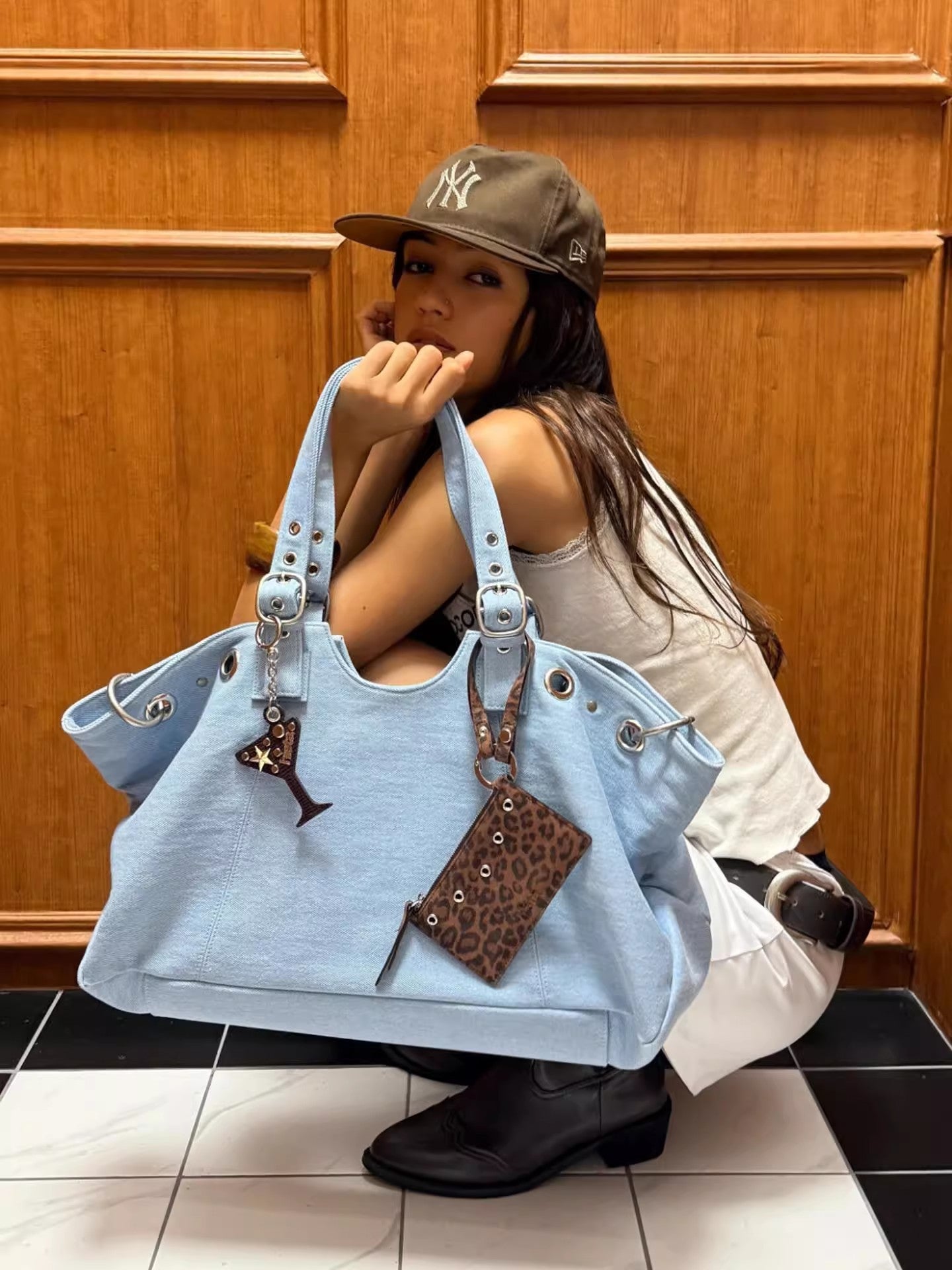 Inspired by Y2K aesthetics, this tote bag blends a relaxed, modern look with practical everyday use. The clean silhouette keeps the design wearable, while subtle styling details add a contemporary edge without feeling overstated.